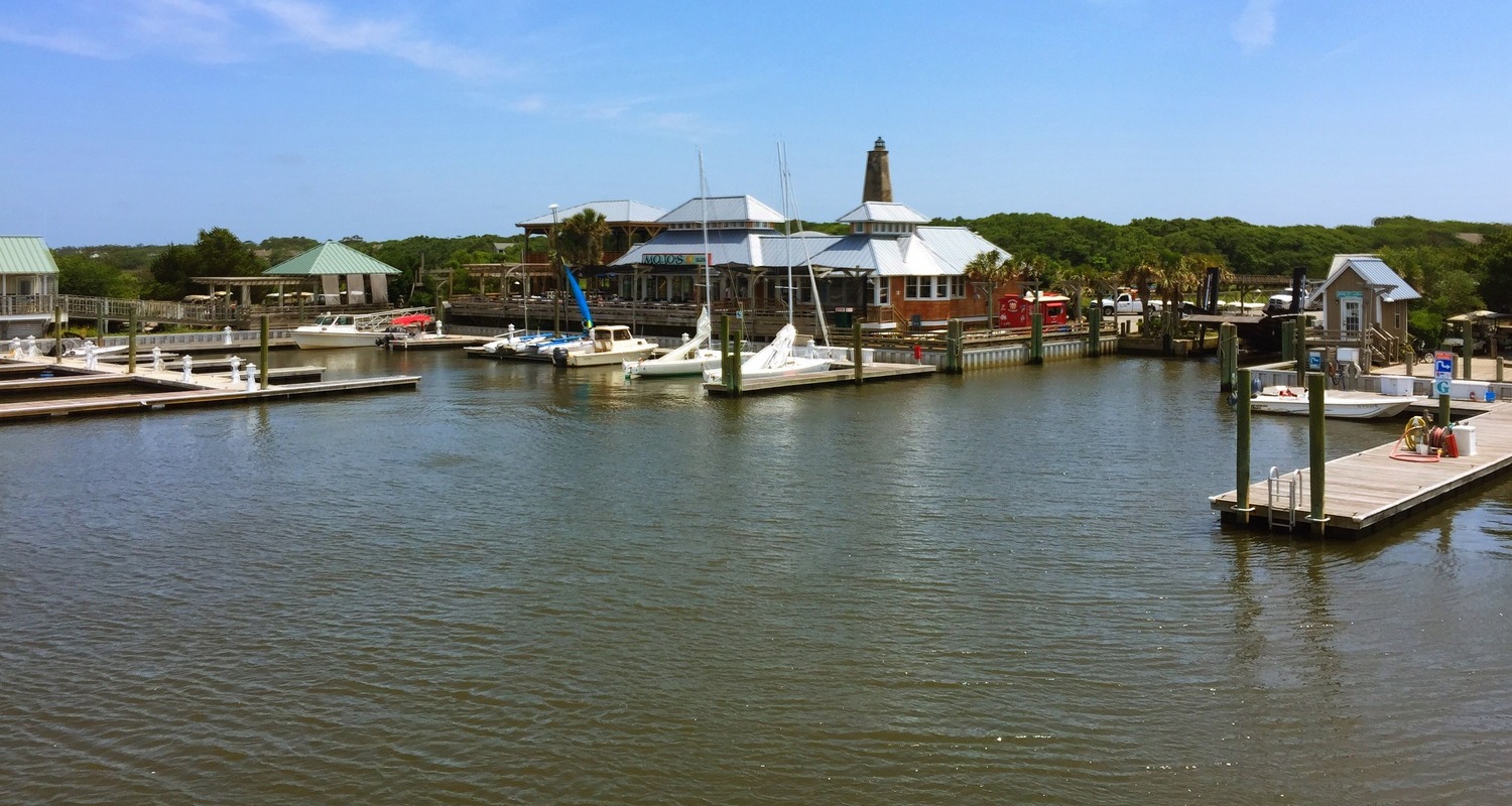 Reach the island by ferry or private boat from Southport, North Carolina. Once you arrive, explore by golf cart, bike, or on foot.